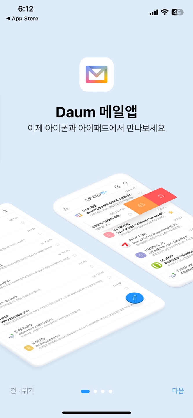 다음 한메일은 PC로도 편리하게 사용할 수 있지만 자신의 모바일에서도 어디서든 편리하게 메일 서비스를 이용할 수 있습니다. 하단의 한메일 앱 설치방법은 다음과 같습니다.