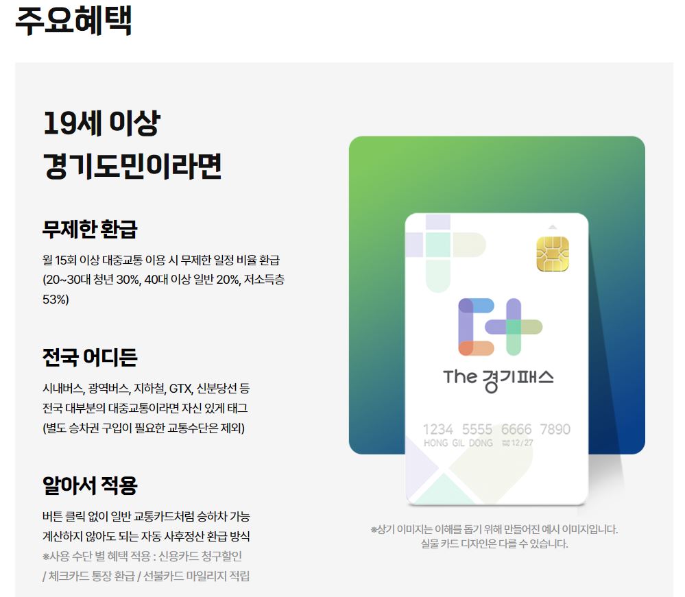 더 경기패스는 경기도민들에게 제공되는 교통 혜택으로 다양한 혜택으로 많은 경기도민들에게 사랑받고 있습니다. 더경기패스 카드의 주요 혜택을 아래와 같이 소개합니다.
