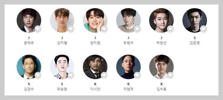 J의 영원라 뮤즈이며 천재적인 재능의 작곡가인 "S"역에는 김준영, 김경수, 유승현이 연기한다. J를 파멸로 밀어넣는 교수 K역에는 이시안, 이현재, 김수용이 라인업에 올랐다.