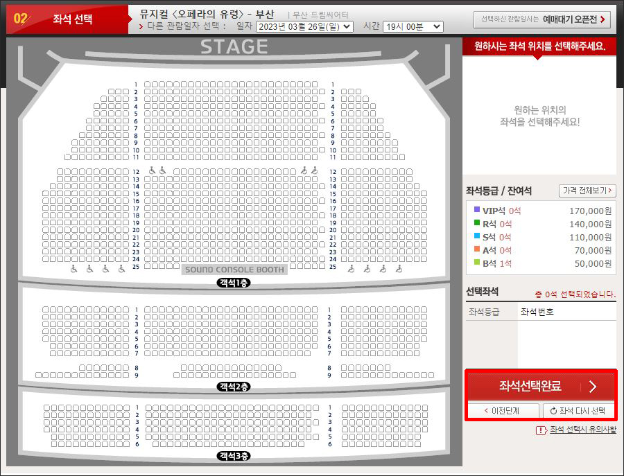 오페라의 유령 좌석 / 가격 정보