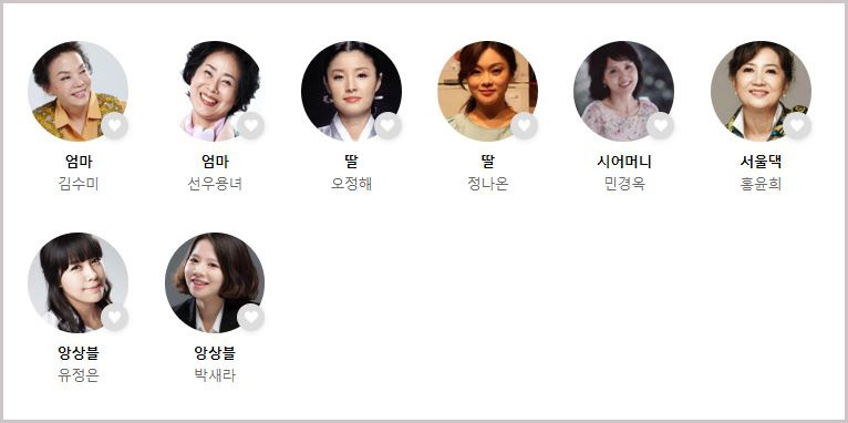 시어머니 역에는 민경옥이 나서고, 서울댁 역에는 홍윤희가 연기한다. 앙상블은 유정은, 박새라가 맡았다.