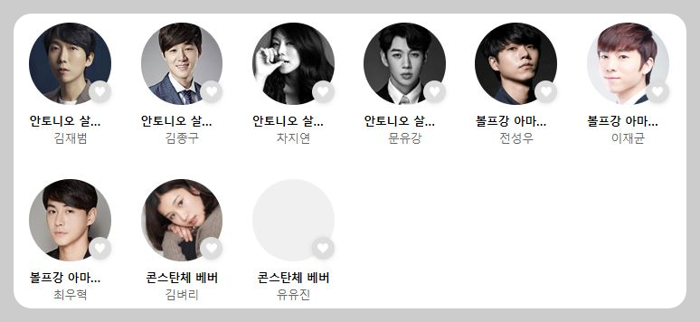 배우라면 한 번씩은 탐낼 배역인 <연극 아마데우스>는 탄탄한 연기력을 인정받은 배우들이 총집합했다. 캐스팅 정보는 다음과 같다.
