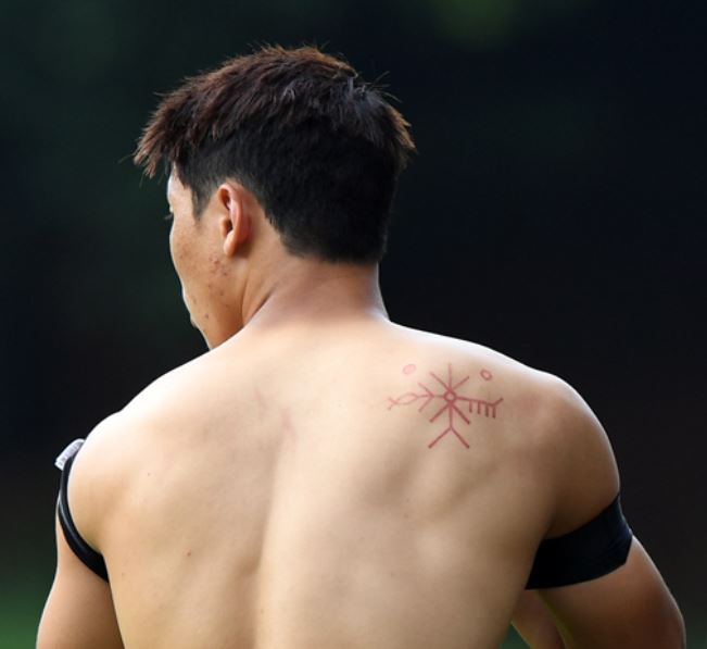 흔히 중계방송을 보면 축수선수들은 흔하게 문신을 한 모습을 찾아볼 수 있습니다. 황희찬 선수도 왼쪽 팔뚝에 문신이 노출되어 궁금증을 자아내고 있습니다.