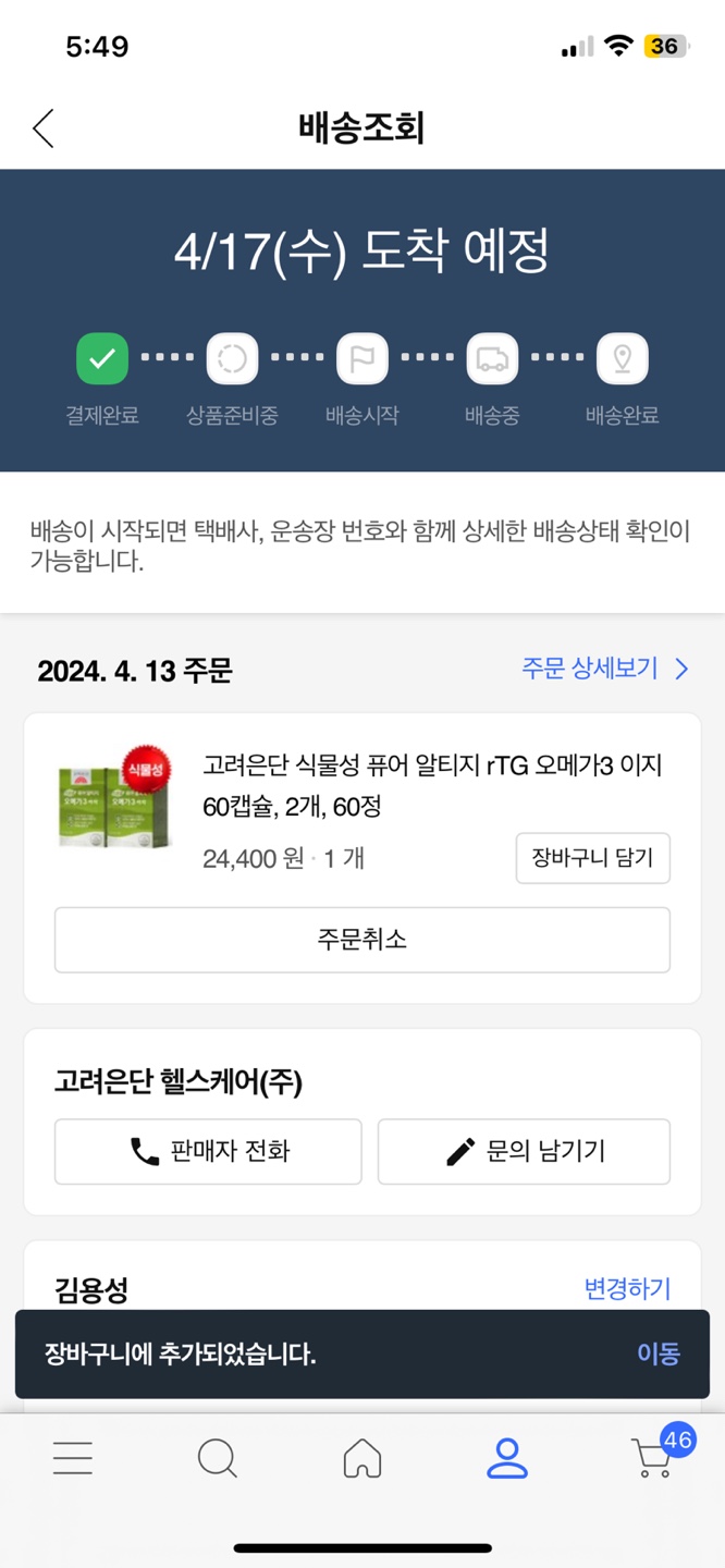 ⑤ 배송조회가 가능하며 도착 예정 시간을 확인할 수 있습니다.