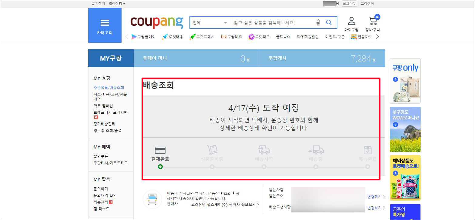 쿠팡을 통해 물건을 주문하신 후 배송조회 방법에 대해 소개합니다. 하단을 참고하세요