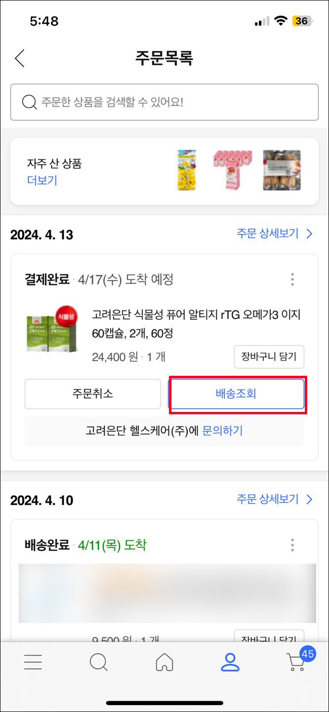 ③ 주문목록에서 주문상품의 "배송조회"를 눌러주세요