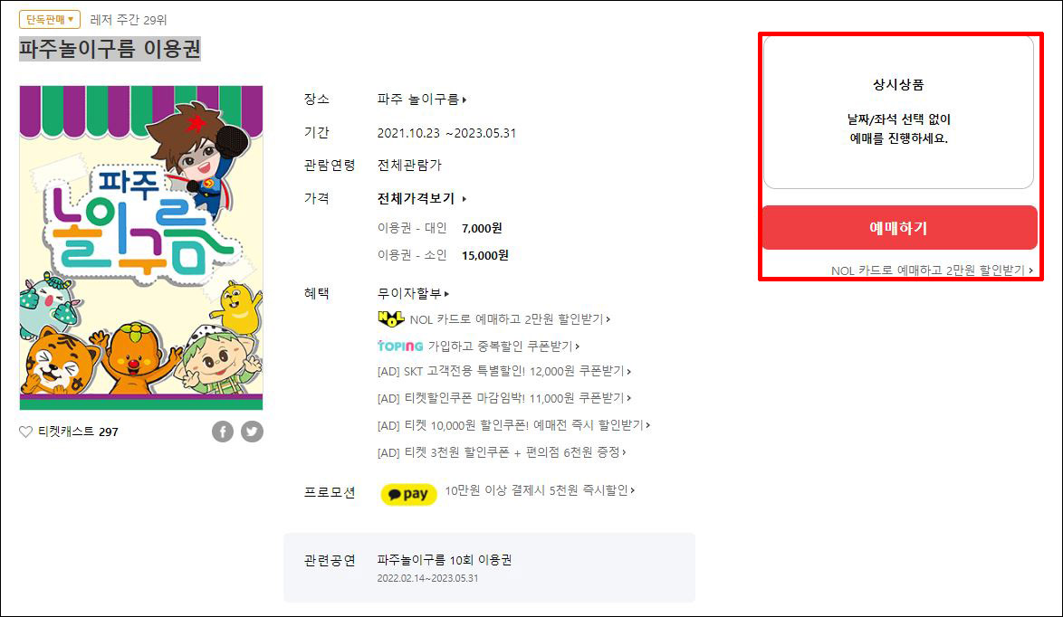 파주 놀이구름 이용권 예매방법에 대해 알아봅니다.