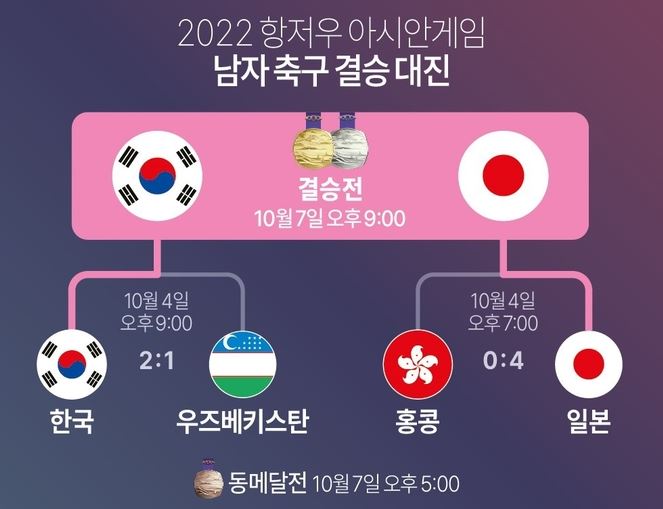 항저우 아시안게임 남자축구 결승전 한국 일본 일정