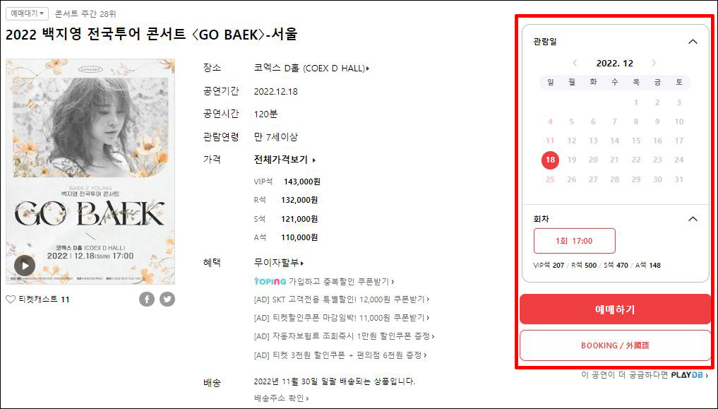 | 서울 | 12. 18(토) | 서울 예매하기 |
