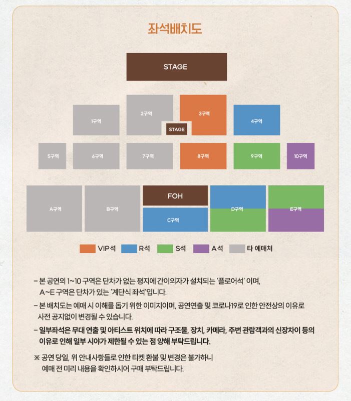 - 공연 당일 티켓 환불 및 변경은 불가하니 미리 공지를 확인하시길 바랍니다.